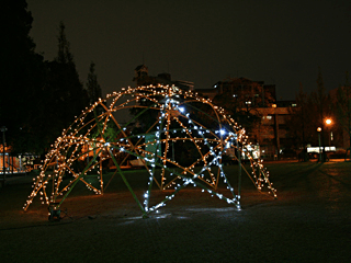 その話はさておき、このスタードームは竹でフレームを作っており、非常にエコロジカルで簡易的且つ経済的な優れものでした。天蓋は、シーツ等を縫い合わせて作るのが一般的なようですが、ここらへんはアイディア次第で色々Edit出来そうです。妄想で生きている僕の大好物です。