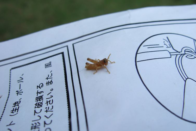 翌日、月見野森林公園にてチルダウン。新緑を感じ、太陽を浴びながらのあたたかいコーヒーは筆舌し難い美味さ。テントの設営技術も向上し、タイコクラブへの意気込み、準備共々もばっちり。文句無しの休日になりました。バッタもこの季節はまだこんなに小さいのですね。生命の神秘ですなぁ。