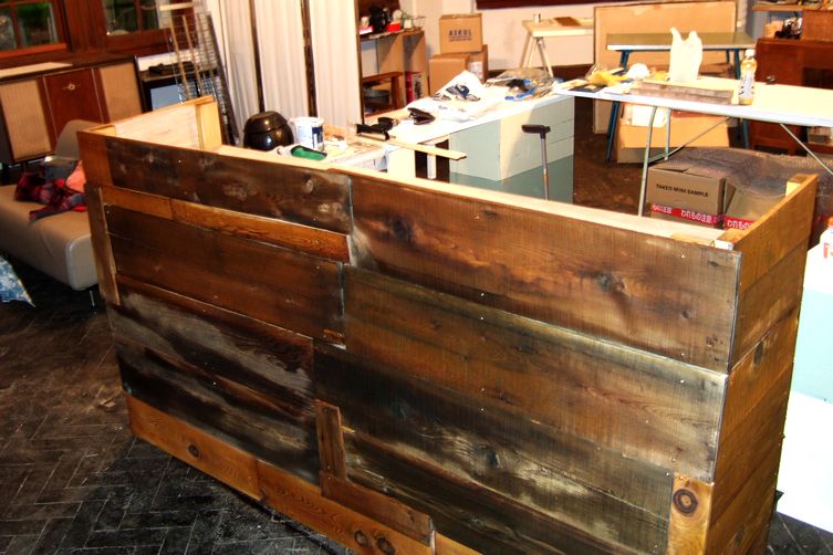 廃材や古材をパズル感覚ではめ込んで行く作業が面白く、『ここはこーだからこの方がいいんじゃね?』とか良い意味でのaboutな現場感覚が産んだDJ Boothです。