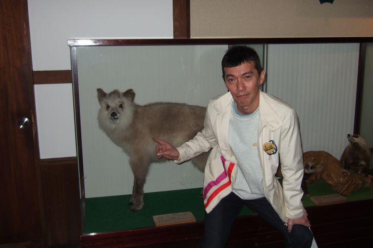と、思ってたのは僕だけのようで、組長はテンションぶちあがり、カモシカ剥製の前で"キメ"のアー写を撮る始末。*写真左