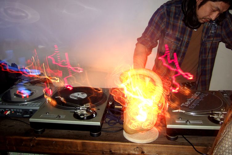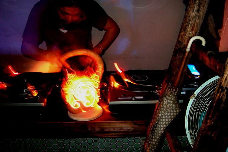 この空間で織り成される音楽に間違いがあるわけがなく、DJ SahibさんのRong Musicなんて特にはまっていました。最近LibyusからCDをリリースしたWoodblueさんはSahibさんのアゲ具合にちょっと困ってたみたいだけど(苦笑)、ラウンジーな良いDJをしていました。(というのも、当初の予定は食事しながらまったりとしたラウンジって事だったらしいのです)