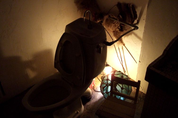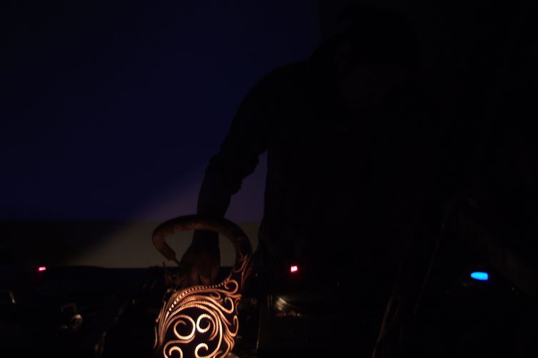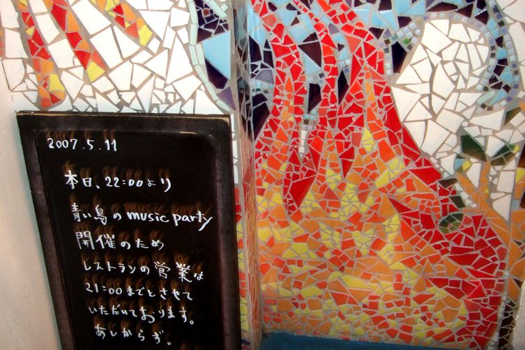 そして、"青い鳥のレストラン"の空間の良さに更に↑(実は、好みすぎて↑どころじゃないくらい密かにアガってました)。JUNKスタイルを基本とした無国籍空間。多分内装はほぼ手作り。エントランスにはサイケデリックなタイルアート、店内天井から大きな錆びた鳥かごがぶら下がり、キッチンはブリキ(かな?)を伸ばして貼り付けててJUNK感たっぷり。DJブースに置かれたひょうたんライトの完成度もかなり高く、プロジェクターもウッドパネル装着、ってなんだこのコダワリ空間は!(笑)