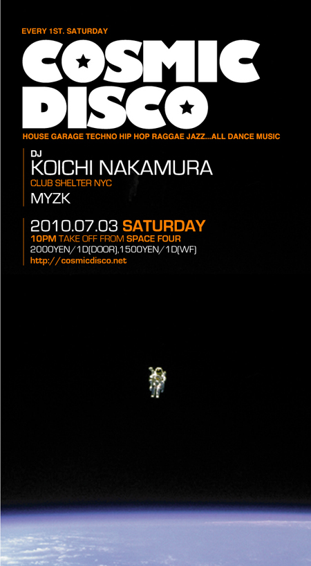既存にない独自の宇宙的舞踏音楽を発信しつづけるパーティーという形の宇宙船 COSMIC DISCO号。
